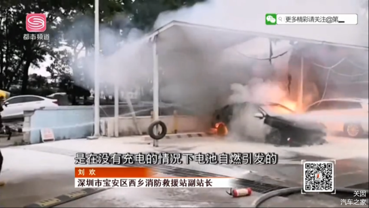 無獨有偶,5月28日,一輛已經(jīng)完成充電的比亞迪秦PRO在深圳也發(fā)生了自燃。據(jù)目擊者稱,該電動汽車起火事件發(fā)生地在深圳致聯(lián)西鄉(xiāng)充電站,該車是在凌晨4點左右充完電,并移至旁邊停車位之后,在早上6點左右開始自燃。而從視頻、圖片資料來看,起火點位于車輛左側(cè)底盤,且火勢擴散很猛,動力電池發(fā)生起火燃燒的可能性較大。