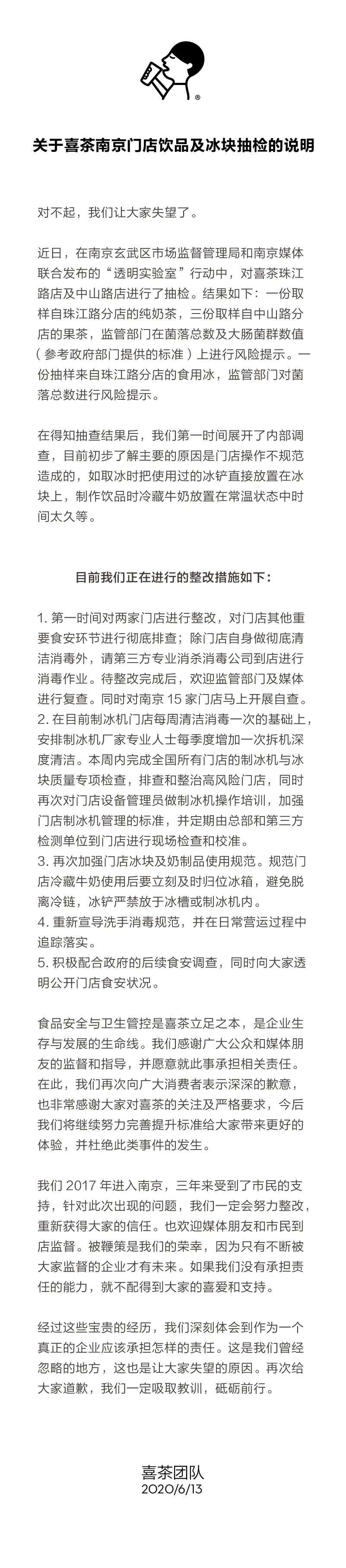 喜茶在官方微信發(fā)文