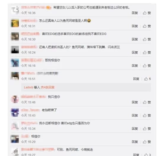 而廠長的微博底下也被一些吃瓜群眾評論早在WE“魚死網(wǎng)破,今晚就走”的廠長不少什么好人。有廠長的粉絲則說自己喜歡的不是EDG而是廠長,希望EDG不要拿廠長出來擋槍。小編認為EDG這波操作真有點拿廠長出來擋箭的味道了,給小伙伴對此怎么看呢?