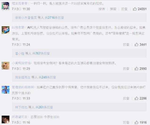在百度第一次回應(yīng)時,微博評論證明積極的居多,大多數(shù)持同情李彥宏,反對潑水人的態(tài)度,當(dāng)然也是因為李彥宏在遭遇潑水時冷靜有風(fēng)度的反應(yīng)獲得不少肯定。