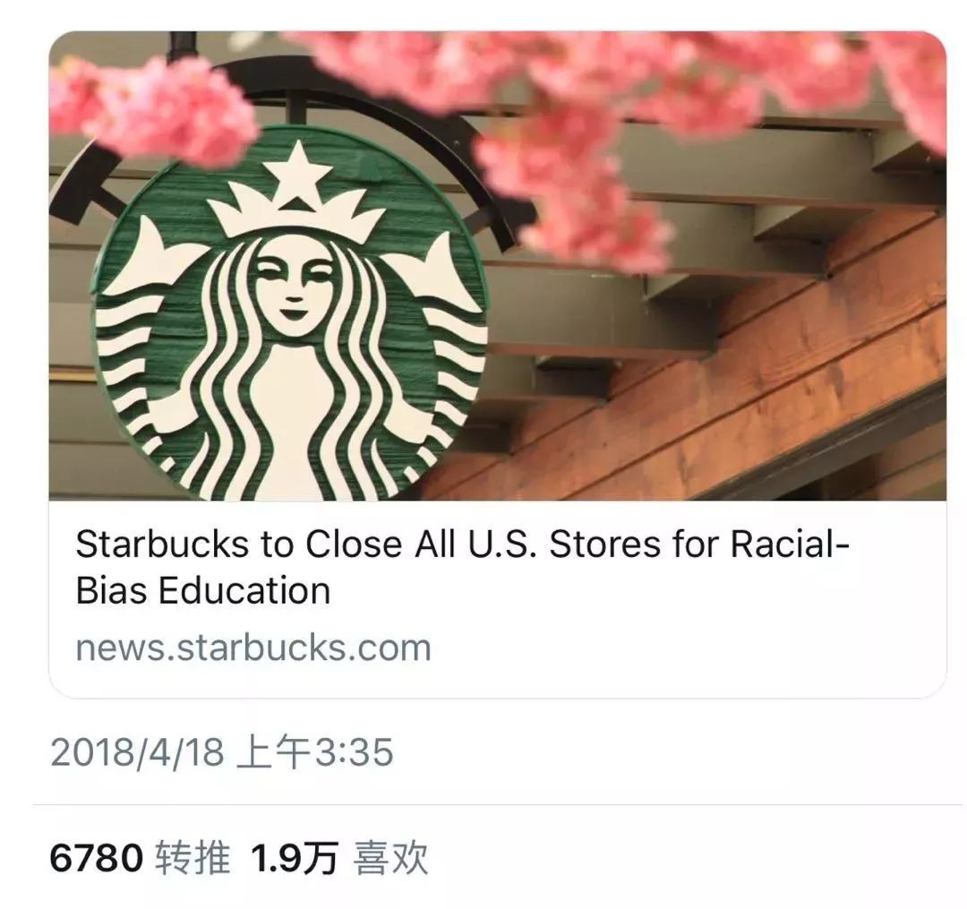 之后,星巴克緊接著宣布:“將在下個月關(guān)閉美國境內(nèi)的8000家門店,對旗下17.5萬名員工進行一下午的‘反種族歧視培訓(xùn)’”。