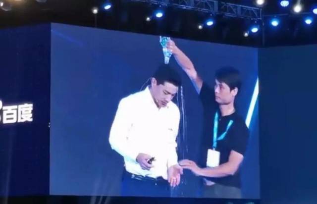 7月3日,2019百度AI開發(fā)者大會如期舉行。不過,今年火爆的開發(fā)者大會現(xiàn)場,發(fā)生了尷尬的一幕。百度公司創(chuàng)始人李彥宏上臺,在介紹完小度“雙全工無喚醒功能”后,正在解讀百度自動泊車時,一位不明人士走到臺上,來到李彥宏身邊,將一瓶礦泉水直直地從李彥宏頭頂?shù)瓜?。李彥宏瞬間完全濕身,此時大會剛剛舉行了10分鐘左右。“What’s your problem?”李彥宏在被潑水后飆出了一句英文。不過,見過各種大場面的李彥宏還是迅速穩(wěn)住了自己。之后大會繼續(xù)。李彥宏一邊用餐巾紙擦去面上的水漬,一邊又說了一句,“就像人工智能到來的路上,總會遇到一些困難”。此后,李彥宏一直穿著濕透的衣服,演講了超過35分鐘。