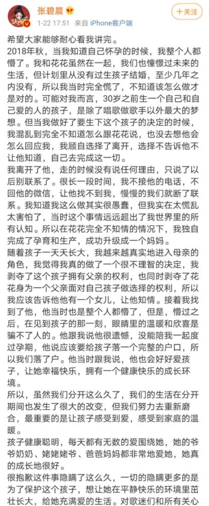 6分鐘后,張碧晨接棒長(zhǎng)文回應(yīng),具體解釋事情的原因。