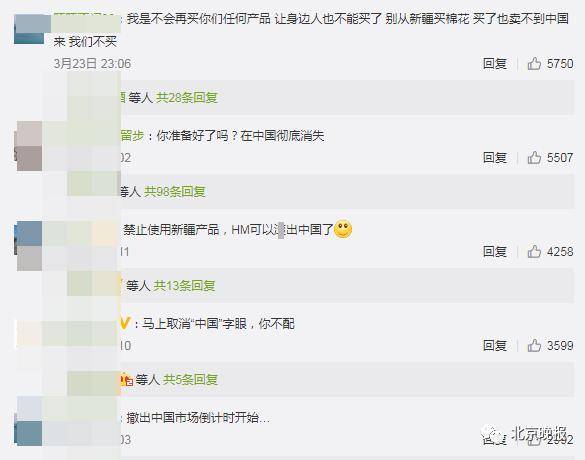 在@HM中國 最近發(fā)布的三條微博下,大批網(wǎng)友留言表示:退出中國。目前相關(guān)留言仍在不斷增長,記者粗略計算了下,20分鐘內(nèi)增加了近千條。