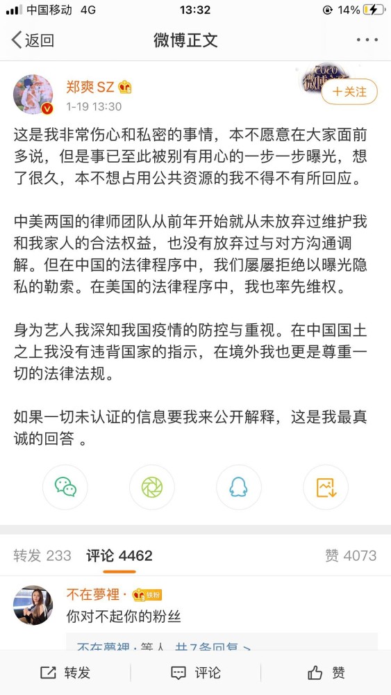 然而反例也有很多,最大的共同點在于不道歉或道歉不真誠,沒有真誠回應網(wǎng)友們的質疑。鄭爽代孕棄養(yǎng)事件曝光后,她雖然在微博上回應了,但卻聲稱自己沒有違法,并沒有回應自己有沒有棄養(yǎng)等網(wǎng)友們實際關心的問題。這就無疑戳到了網(wǎng)友們的紅線,鄭爽的回應顯然不夠真誠,而且是避重就輕,網(wǎng)友們當然不買賬。鄭爽隨后迎來的就是官媒的點名和全面封殺,這也是她咎由自取了。