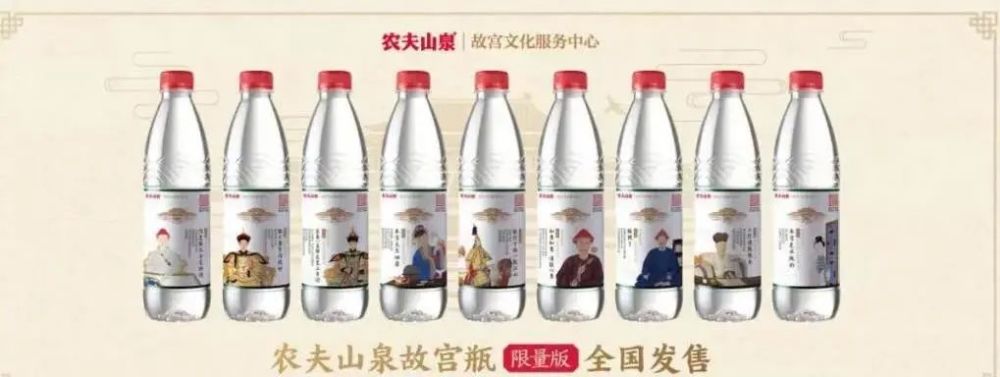 故宮瓶,隨著《延禧攻略》《如懿傳》等,清宮大戲的熱播,農(nóng)夫山泉趁熱打鐵,聯(lián)合故宮文化服務(wù)中心,推出了9款限量版“故宮瓶”,與帝王后妃“瓶”水相逢。