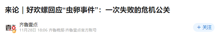 網(wǎng)媒、網(wǎng)民等也開始發(fā)文評(píng)價(jià)好歡螺的公關(guān),@齊魯壹點(diǎn) 稱之為“一次失敗的危機(jī)公關(guān)”。