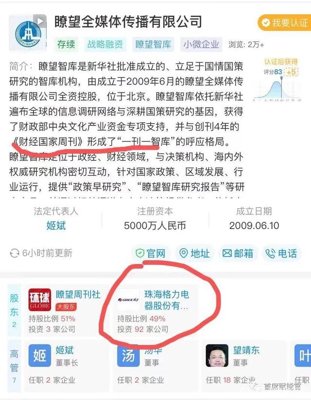 據(jù)公開(kāi)資料,《財(cái)經(jīng)國(guó)家周刊》由新華社主管,但其發(fā)行、廣告及各類(lèi)品牌經(jīng)營(yíng)活動(dòng)的代理商是格力電器持股49%的瞭望全媒體傳播有限公司。