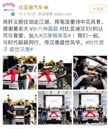【事件梗概】2021年11月5日,比亞迪汽車通過微博宣布“六神磊磊”加入漢唐精英薈,并感謝著名大V對比亞迪漢EV的認(rèn)可和喜愛。