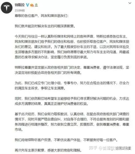 4月20日,上海警方通報稱,車頂維權(quán)女子張某因擾亂公共秩序被處以行政拘留5日。同日,新華社再度發(fā)表評論文章《誰給了特斯拉“不妥協(xié)”的底氣》,稱“特斯拉高管的傲慢回應(yīng),讓很多人感到費解。”、“如果車企涉嫌‘店大欺客’,有關(guān)部門也要加強監(jiān)管”?!爸醒胝ㄎL安劍”公眾號也發(fā)表文章《特斯拉必須面對中國客戶的拷問:責(zé)任何在?擔(dān)當(dāng)何在???》,文中寫道:面對車主的一次次維權(quán),特斯拉的回應(yīng)中卻盡顯“老爺公關(guān)”的驕縱豪橫,讓中國消費者心寒。隨后,#中央政法委評特斯拉車展維權(quán)#沖上微博熱搜。當(dāng)天又是深夜,特斯拉官網(wǎng)發(fā)布公開道歉,表示會成立專門處理小組,在合法合規(guī)的條件下,全力滿足車主訴求,爭取得到車主的滿意。