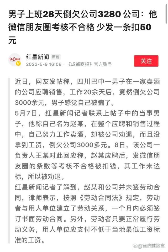 2022年4月21日,河南商丘,一名供職于一家醫(yī)養(yǎng)中心的女子在朋友圈中發(fā)布了一則“我真羨慕人家按時(shí)發(fā)工資”的消息。然而,該女子竟然因?yàn)榘l(fā)布這條朋友圈而遭到公司開除,更甚至評論其朋友圈這條內(nèi)容的同事也一同被開除。