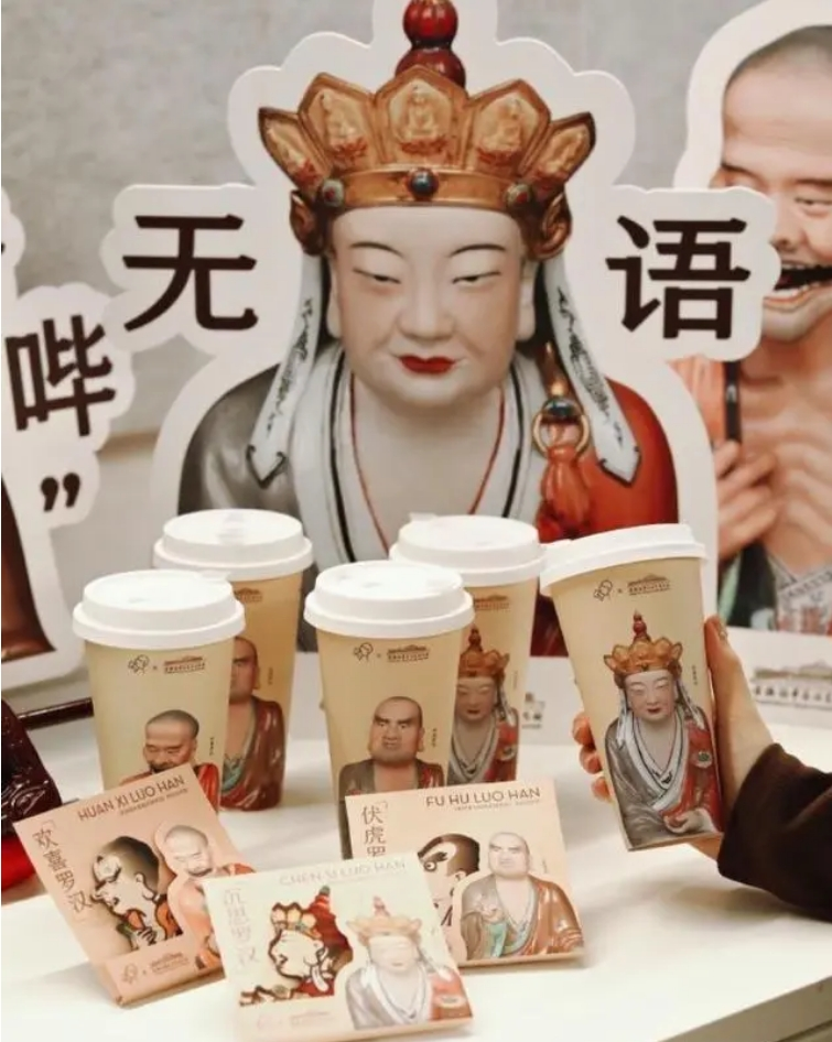 隨之而來的,是這款茶拿鐵及其周邊產(chǎn)品的包裝設(shè)計引發(fā)的一系列關(guān)于宗教元素商業(yè)宣傳的爭議。