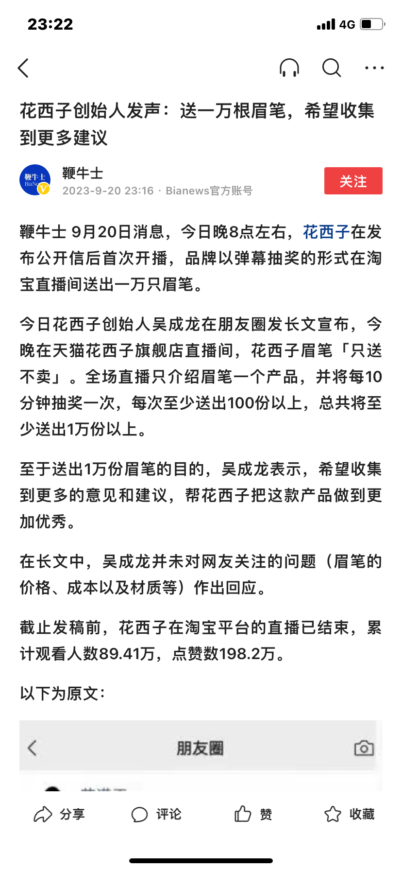 據(jù)媒體報道,2023年9月10日下午,李佳琦在直播間回懟粉絲有關(guān)“花西子眉筆價格貴”的吐槽時稱:“有些時候找找自己原因,這么多年了工資漲沒漲,有沒有認(rèn)真工作?”該言論一出便引發(fā)大量粉絲不滿,李佳琦和花西子品牌的微博評論區(qū)及直播間被聲討聲淹沒。