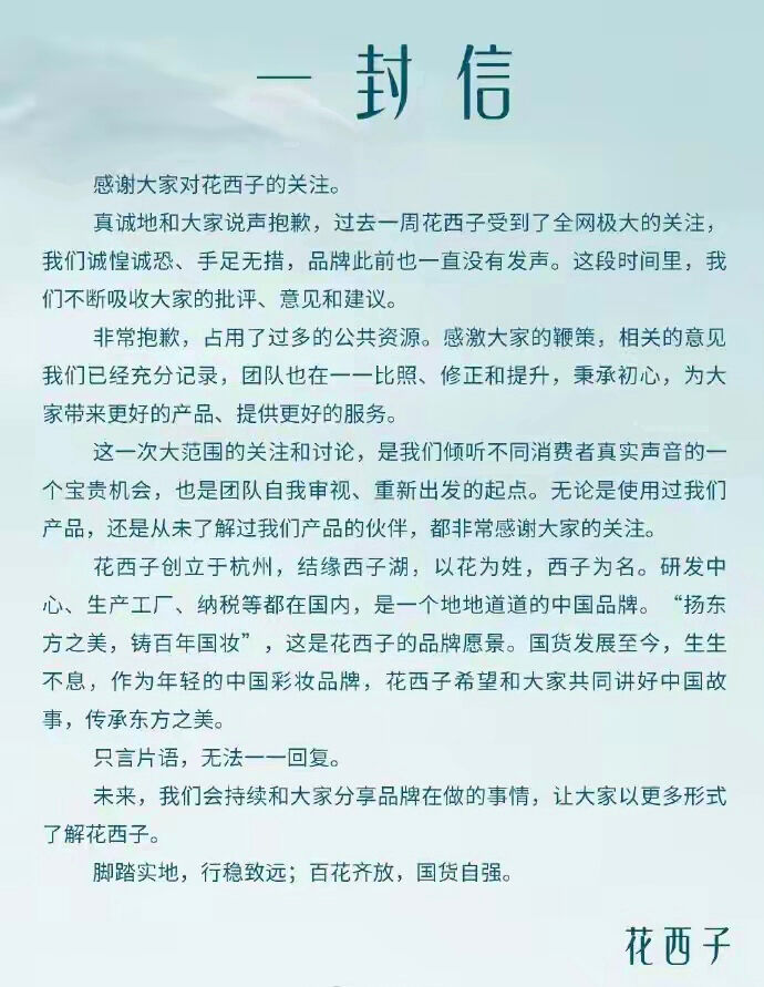 令人不解的是,花西子卻一直沒有有效回應(yīng)。直到9天后的9月19日晚上,輿論熱度已經(jīng)逐步轉(zhuǎn)弱,花西子卻忽然作出回應(yīng),在官方微博賬號發(fā)布了一封“道歉信”。當(dāng)晚,社交媒體流露出一張顯示為花西子公關(guān)因意見不被采納而離職的截圖。第二天,有媒體報道稱,花西子創(chuàng)始人通過朋友圈宣布將免費送出1萬根眉筆。之后,花西子斷續(xù)采取了多次“發(fā)瘋”式的回應(yīng),輿論呈現(xiàn)為一種多角度質(zhì)疑交織狀態(tài)。與之對應(yīng)的是,一度霸榜“雙11”的花西子跌出了天貓彩妝預(yù)售排行榜前20位。