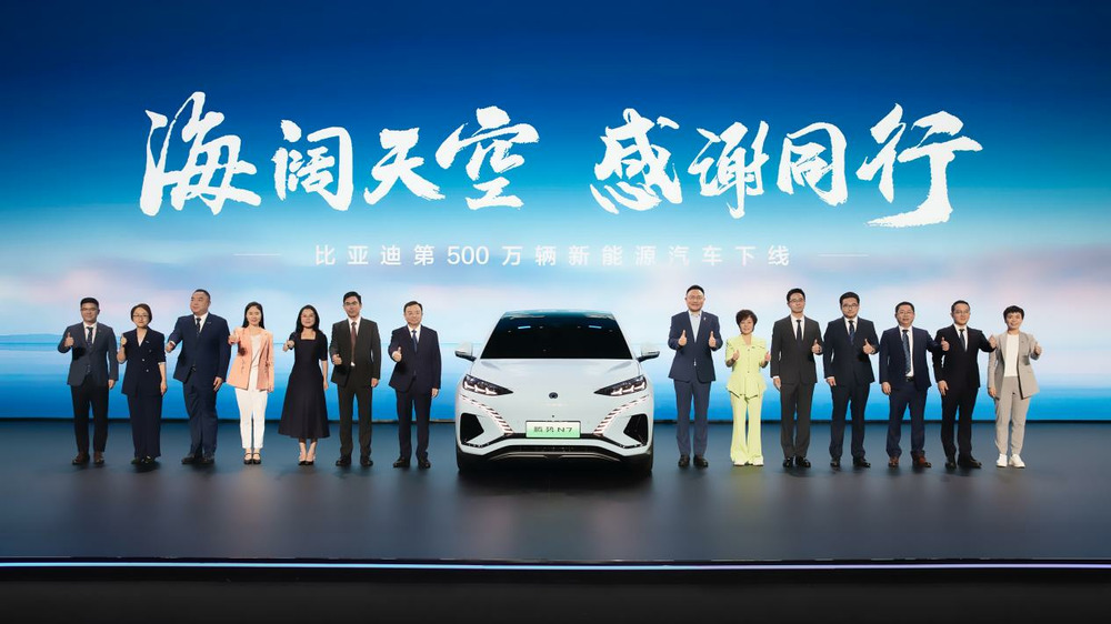 兩個多月后的8月9日,比亞迪第500萬輛新能源汽車下線。比亞迪董事長兼總裁王傳福在發(fā)布會上細(xì)數(shù)了比亞迪在過去二十年經(jīng)歷的起伏,回顧了中國汽車工業(yè)以及中國汽車品牌的發(fā)展歷程。在演講中,王傳福多次強調(diào)“中國汽車品牌”,并喊出“我們在一起,才是中國汽車”的口號。下線活動的現(xiàn)場,即比亞迪在深圳的全球總部廣場的正中央所擺放的十三臺車型,并不是比亞迪的,而是其他中國品牌汽車,包括紅旗、蔚來、哈弗……等。比亞迪表示,這十三輛車的背后,都有一個共同的名字“在一起,才是中國汽車”。圍繞這一主題,比亞迪開展了一系列“感謝同行”的宣傳,其中“在一起,才是中國汽車”的視頻,形成刷屏叫好的聲勢,部分媒體和網(wǎng)友借此聯(lián)系之前長城汽車舉報比亞迪的事進(jìn)行對比,贊揚比亞迪的格局、批評長城汽車搞“窩里斗”。