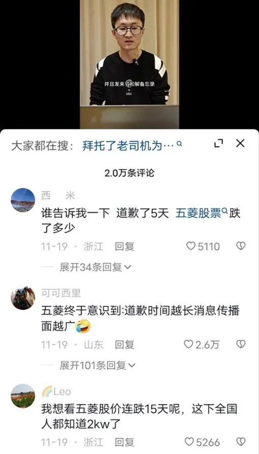 第二個視頻中,王飛進(jìn)一步解釋同時承認(rèn)了自己的錯誤,甚至還稱自己已到廣州,想在廣州車展上跟五菱領(lǐng)導(dǎo)們面對面道歉。
