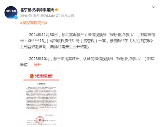 這個(gè)案子也是一次普法的好機(jī)會(huì),提醒大家在網(wǎng)上發(fā)布信息時(shí)得遵守法律,尊重別人的權(quán)益。在網(wǎng)上收到各種侵害時(shí),情通過法律手段維護(hù)自己的權(quán)益和聲譽(yù)。很多人意識(shí)到孫紅雷過去一年多承受了很多委屈和不實(shí)指責(zé),希望大家更理性地看待網(wǎng)絡(luò)信息。