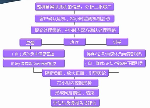 ONR Media的危機(jī)公關(guān)團(tuán)隊專門在企業(yè)危機(jī)爆發(fā)時為企業(yè)提供專業(yè)的危機(jī)檢測報告及相應(yīng)的應(yīng)急預(yù)案,憑借對網(wǎng)絡(luò)特征的熟悉和長期的危機(jī)公關(guān)經(jīng)驗(yàn),ONR Media能對企業(yè)所處的輿論環(huán)境做出客觀、準(zhǔn)確的判斷,并根據(jù)監(jiān)測情況分析網(wǎng)絡(luò)環(huán)境走向,提出適時有效的應(yīng)對方案,在客戶審核通過后可即刻執(zhí)行,保證第一時間遏制負(fù)面話題的擴(kuò)散,挽救企業(yè)品牌形象。同時采取正面回應(yīng)的方式,充分調(diào)動網(wǎng)友并引導(dǎo)網(wǎng)民言論,從根本上消除危機(jī)。除此以外,ONR Media還協(xié)助企業(yè)結(jié)合市場環(huán)境做提升傳播計劃,在處理企業(yè)危機(jī)的同時,主動出擊,營造良好的網(wǎng)絡(luò)氛圍,進(jìn)一步提升企業(yè)品牌形象。